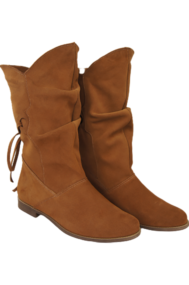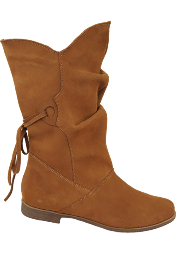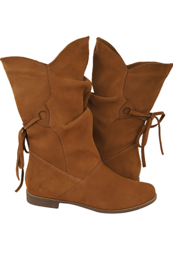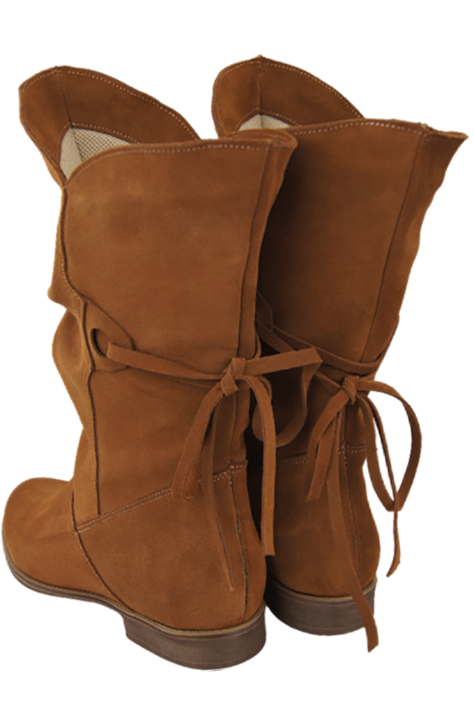 - Zadní část boty je zdobena koženými řemínky, které se zavazují do karda