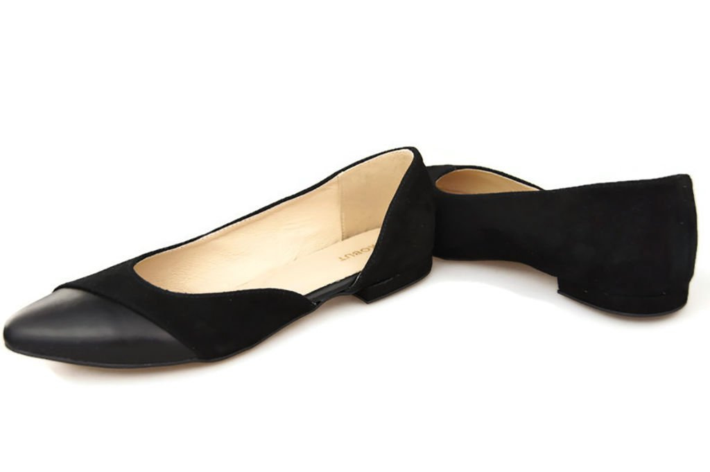 - Dámské baleríny z vysoce kvalitní přírodní lícové kůže v kombinaci s kozí semišovou kůží .