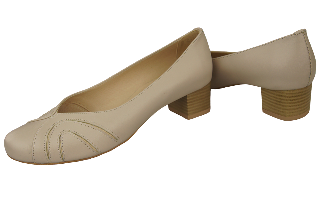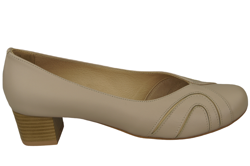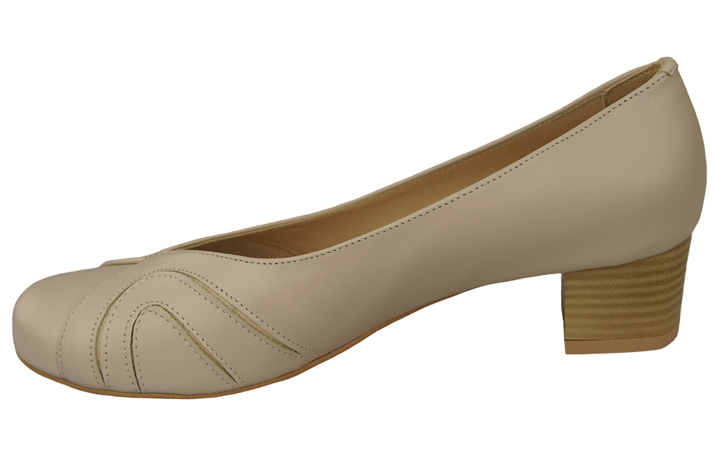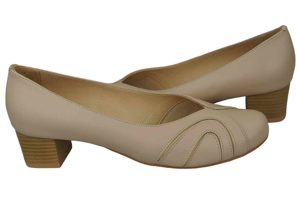 - Stabilitu a oporu nohy zajišťuje dokonale tvarovaná nízká pata potažená přírodní kůží.