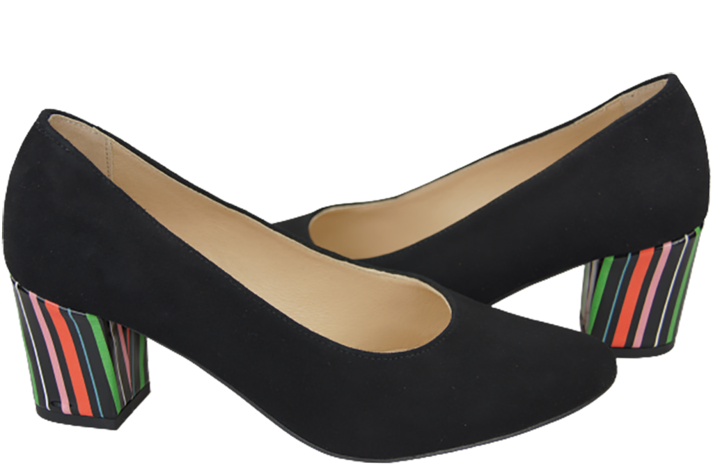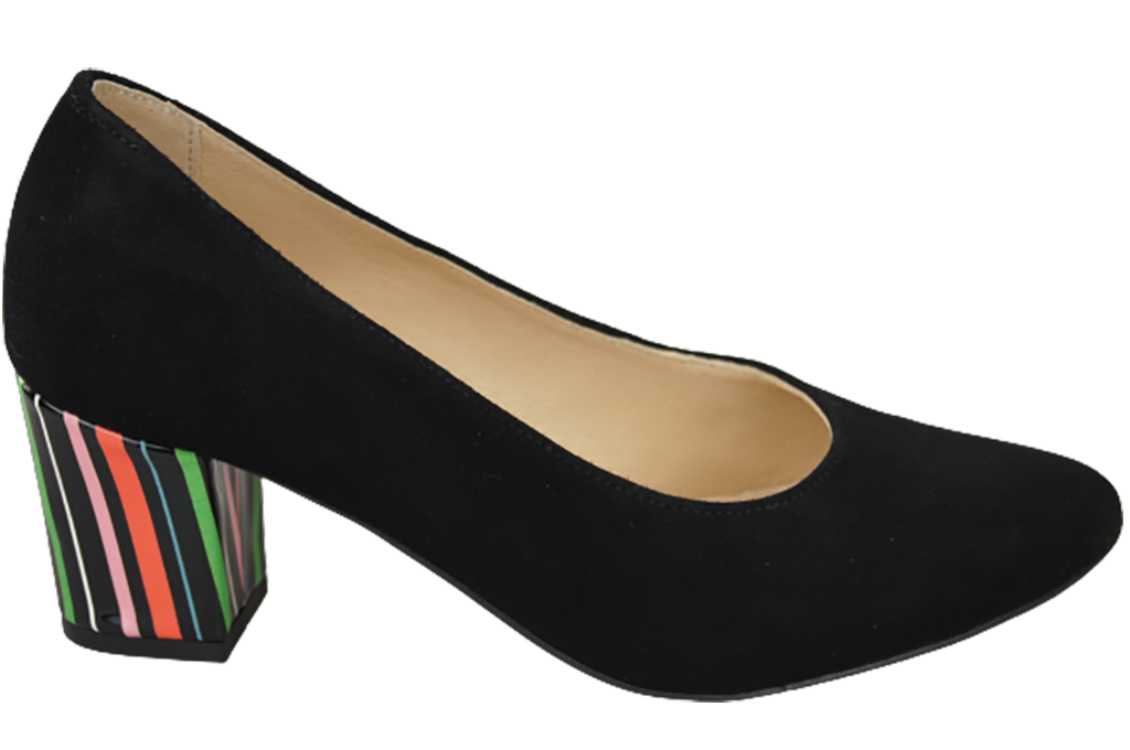 Dámská obuv černá semišová z přírodní kůže s ozdobným podpatkem 158 s ElitaBut