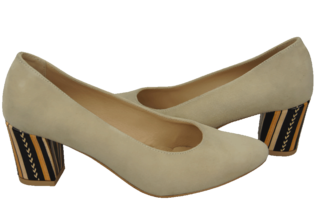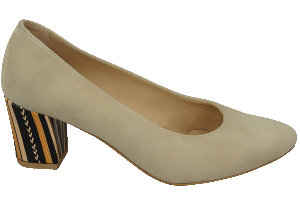 Dámská obuv Beige Natural Suede Leather Decorative Heel 158 With ElitaBut