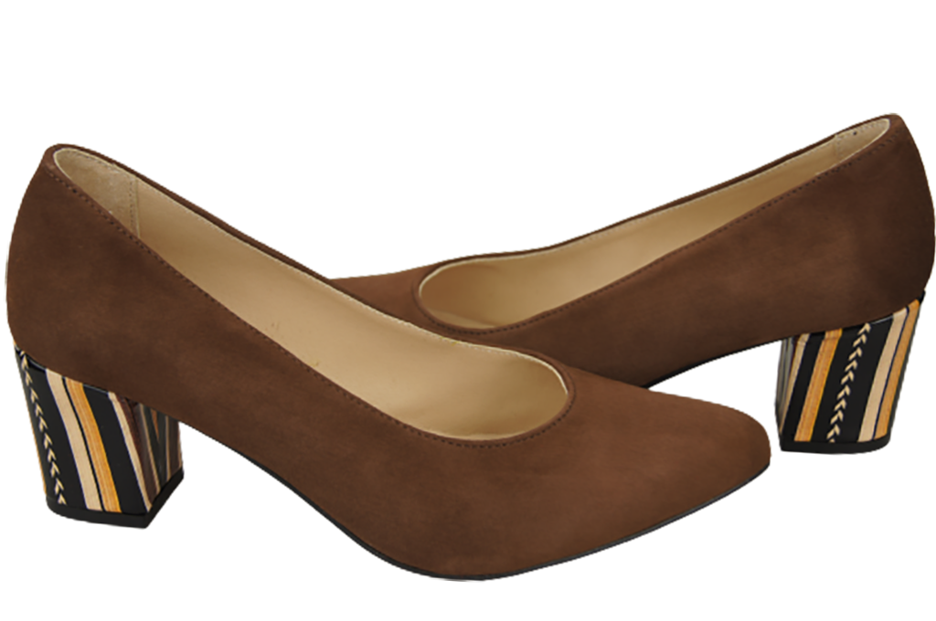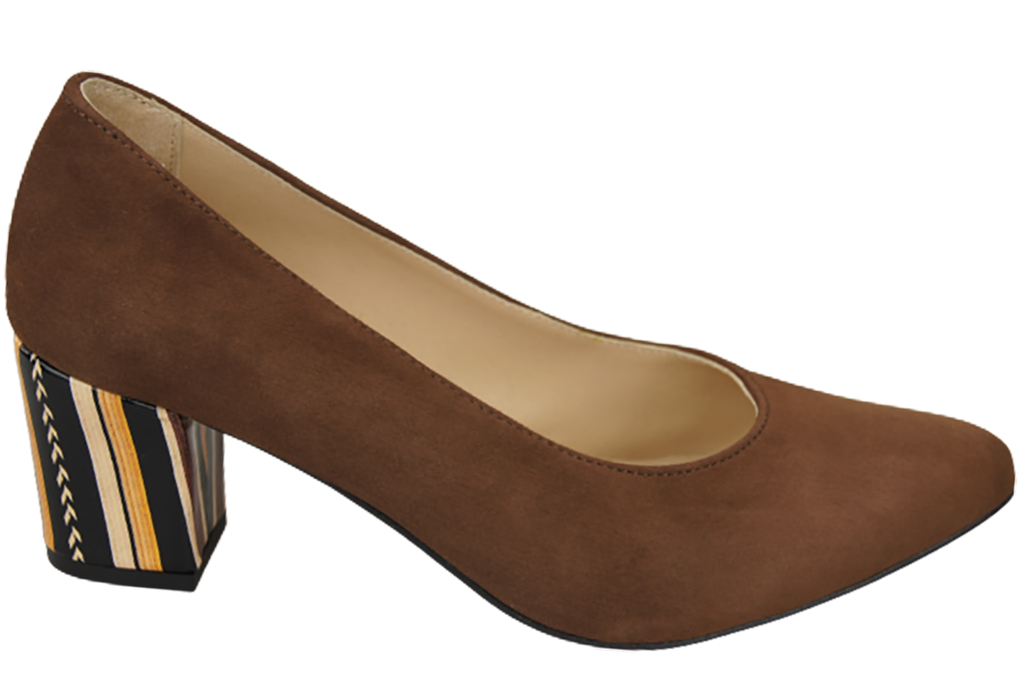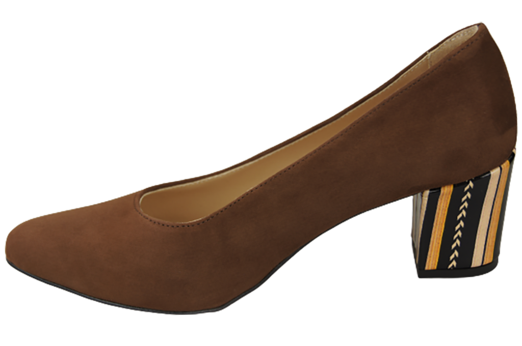 Dámská obuv Hnědá semišová obuv z přírodní kůže s ozdobným podpatkem 158 s ElitaBut