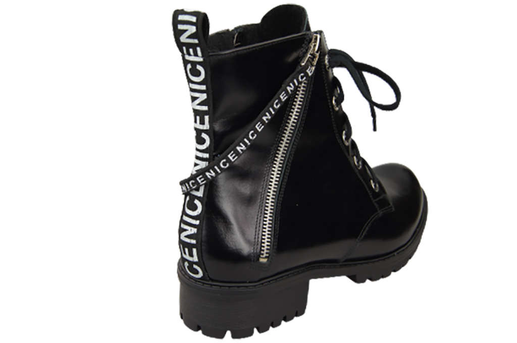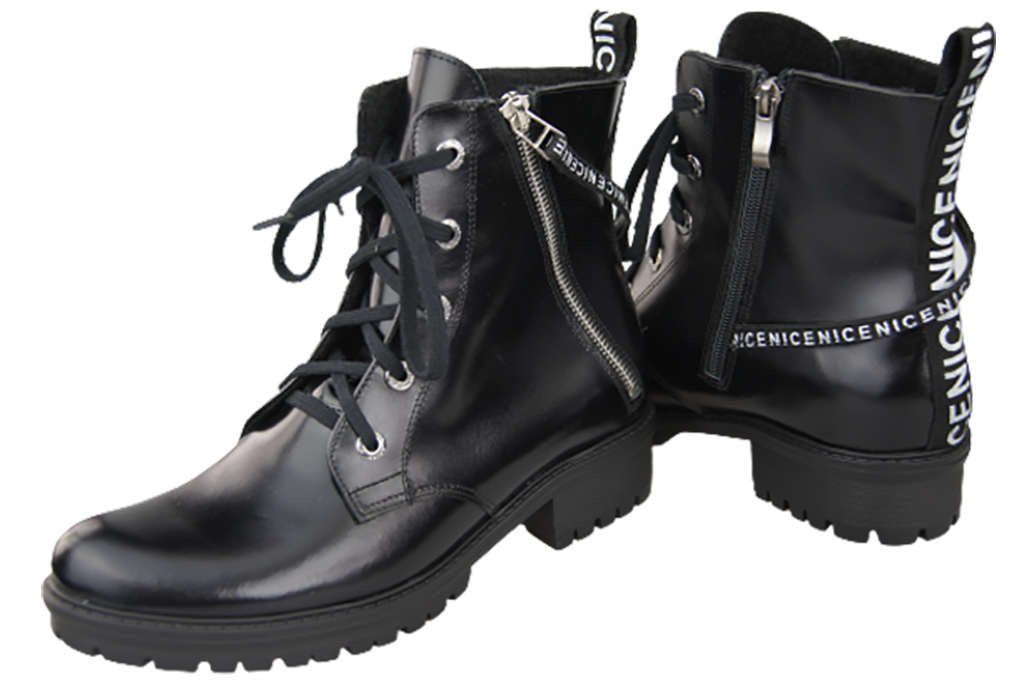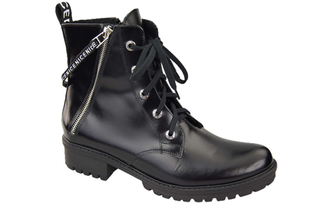 Obuv Dámské kozačky s nápisem NICE Přírodní kůže Černá lesklá 173 L ElitaBut
