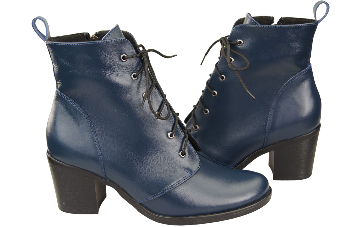 Dámské kozačky námořnická modrá Šněrovací zimní z přírodní kůže 188 Z ElitaBut