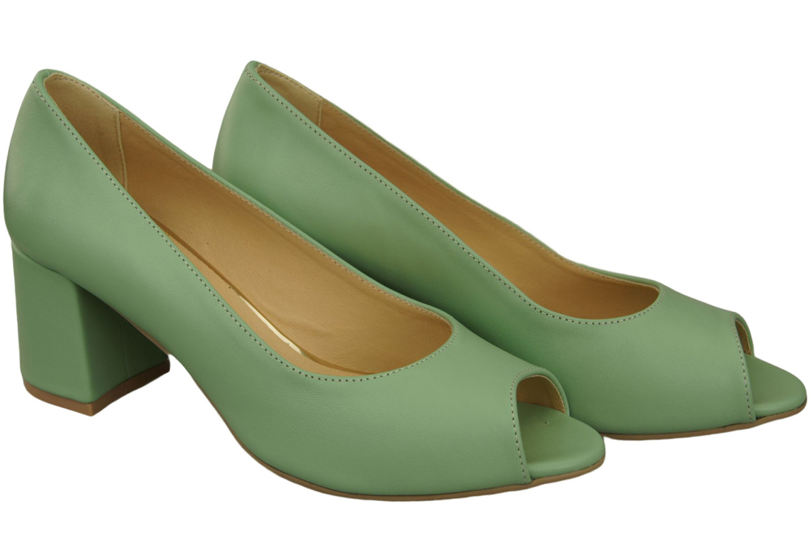 Dámská obuv PEEP TOE Mint Lodičky z přírodní kůže s potaženým podpatkem 192 ElitaBut