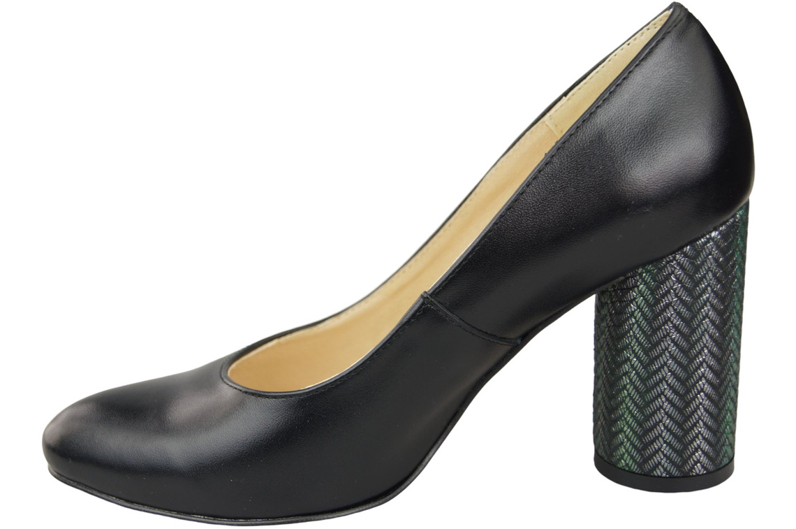 Dámská obuv Dámské lodičky Černá přírodní kůže Barevný zdobený podpatek 194 ElitaBut