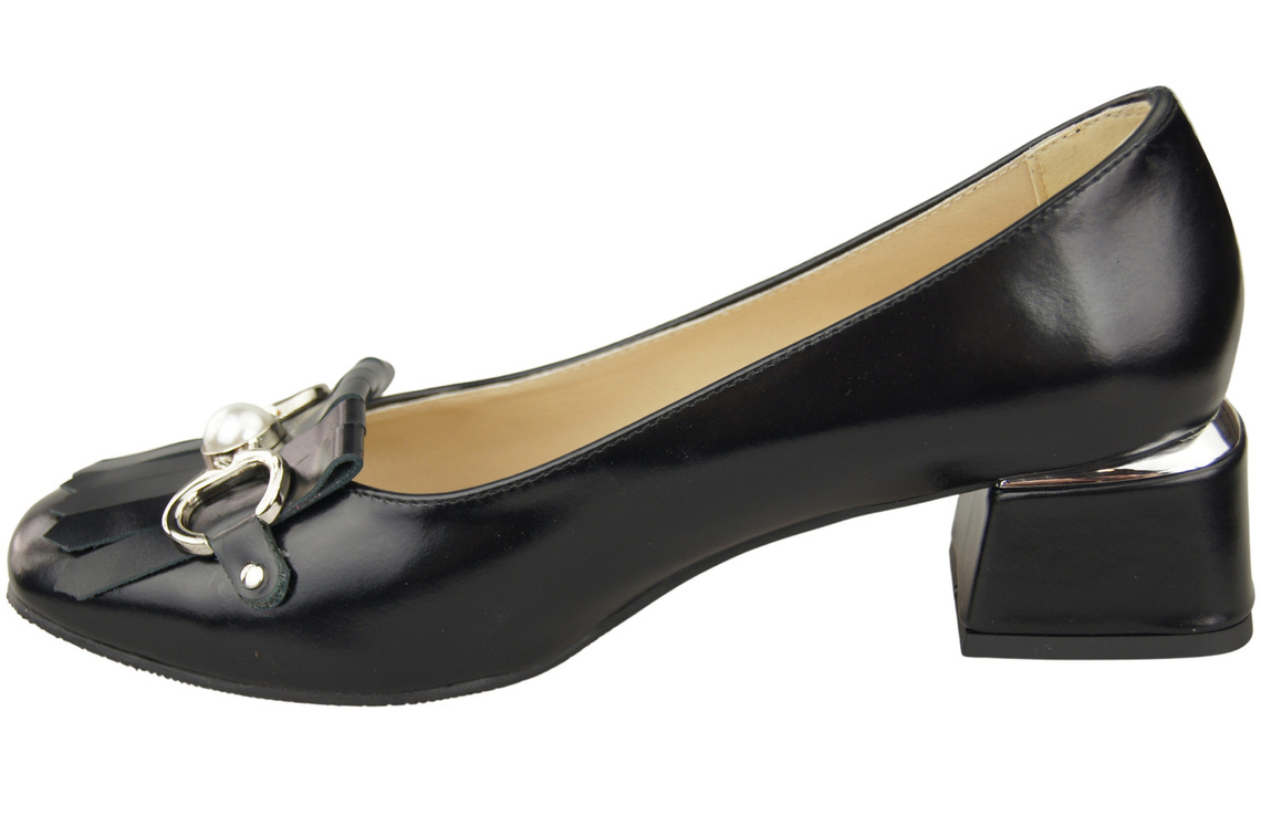 Dámská obuv Dámské lodičky zdobené střapcem Černé lesklé přírodní kůže 195 ElitaBut