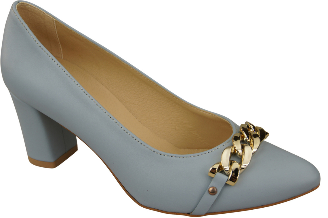 Klasické dámské lodičky Světle modrá přírodní kůže se zlatým ozdobným řetízkem 200 ElitaBut