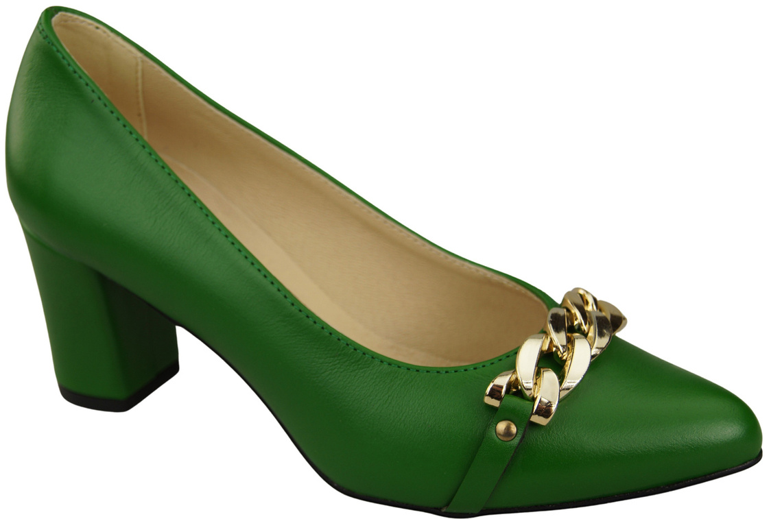Klasické dámské zelené kožené boty se zlatým ozdobným řetízkem 200 ElitaBut