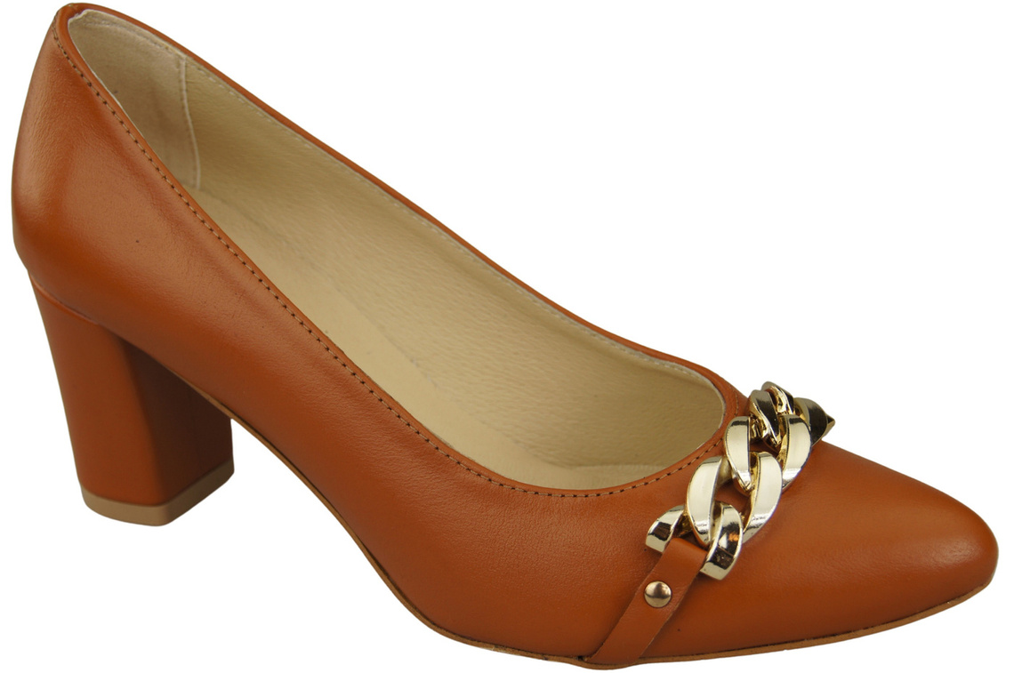 Klasické dámské červené boty z přírodní kůže se zlatým ozdobným řetízkem 200 ElitaBut