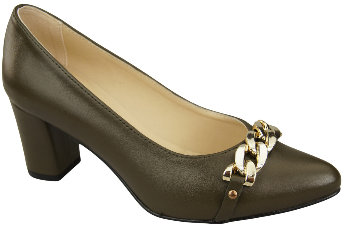 Klasické dámské boty Olive Přírodní kožené lodičky se zlatým ozdobným řetízkem 200 ElitaBut