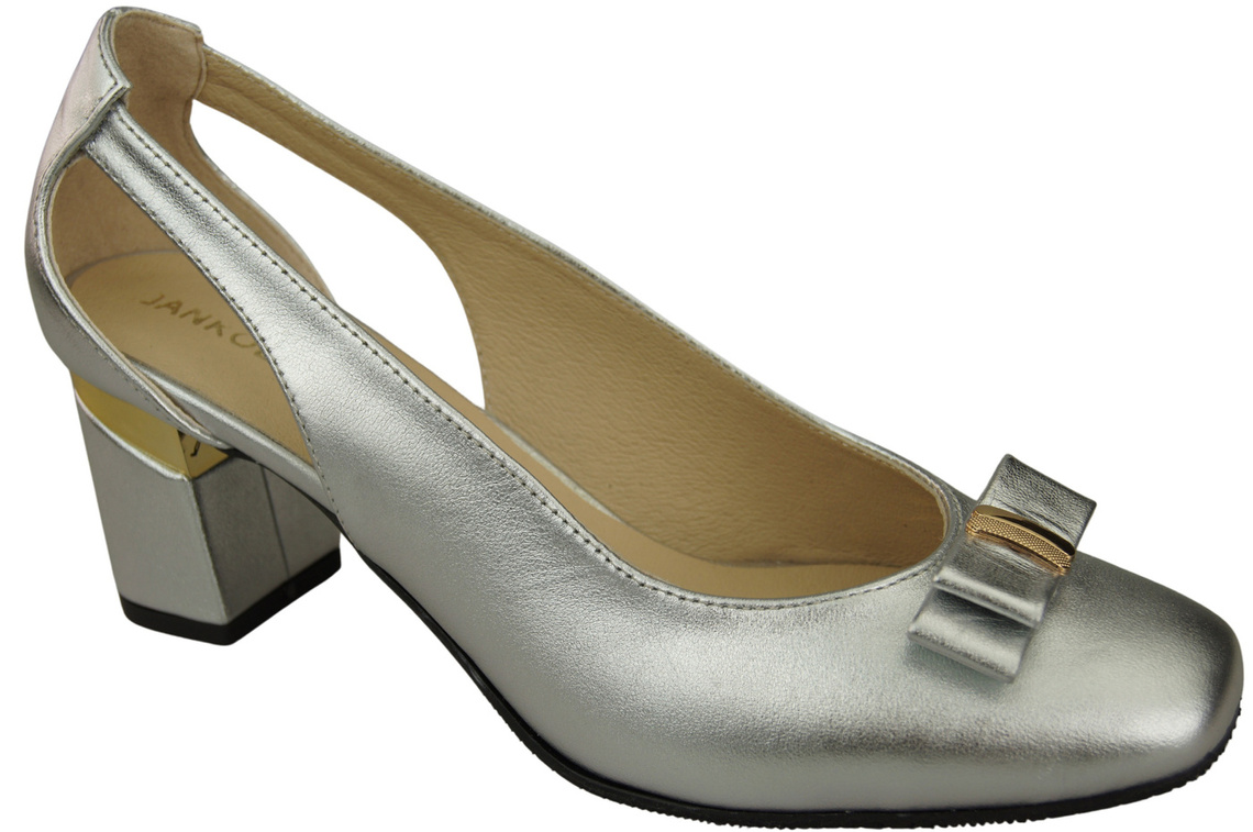 Boty Dámské stříbrné lodičky z přírodní kůže s ozdobným podpatkem 199 ElitaBut