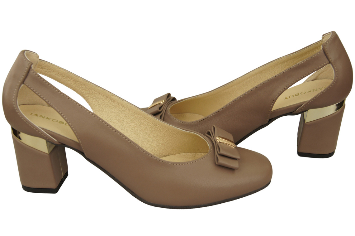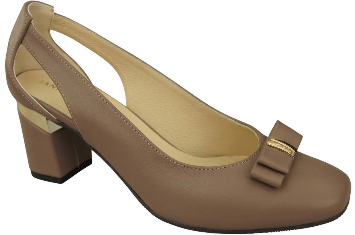 Dámské boty Cappuccino Tmavé kožené lodičky s ozdobným podpatkem 199 ElitaBut