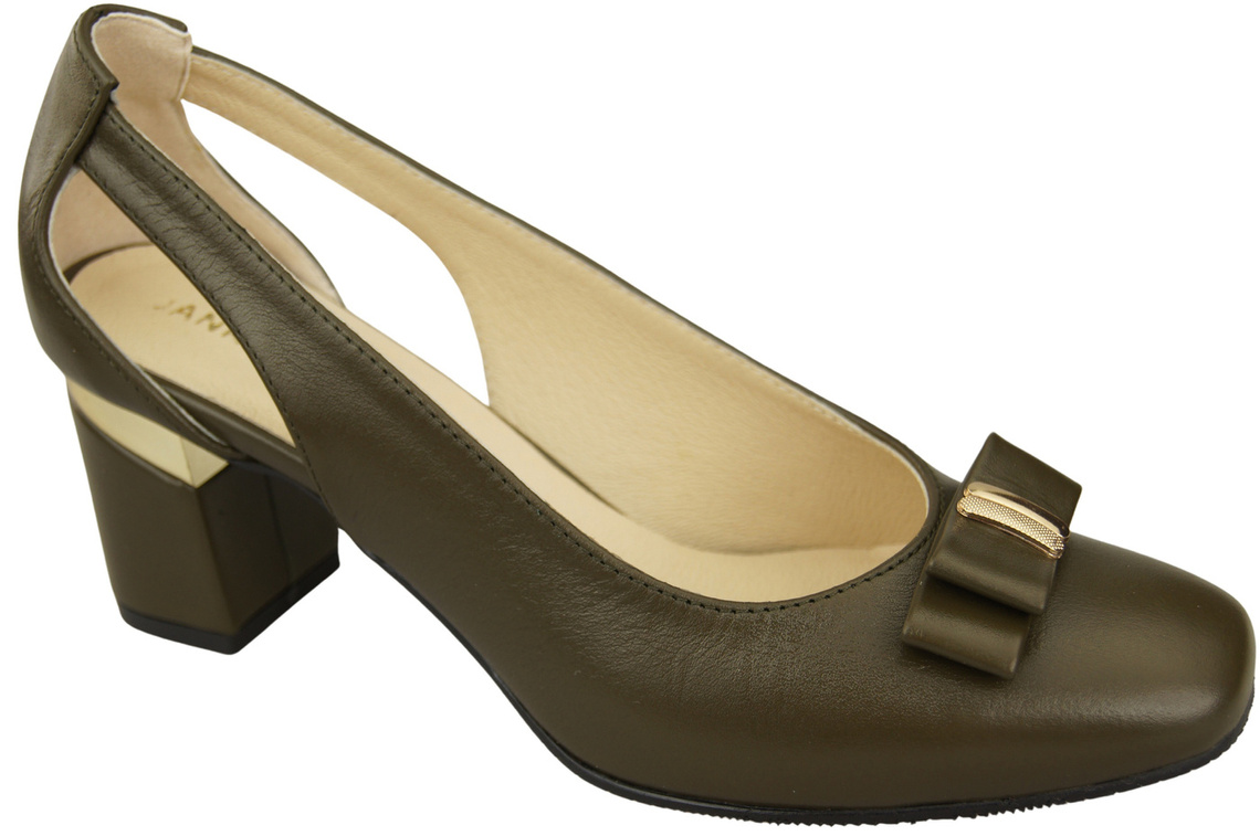 Dámská obuv Obuv z olivové přírodní kůže s ozdobným podpatkem 199 ElitaBut
