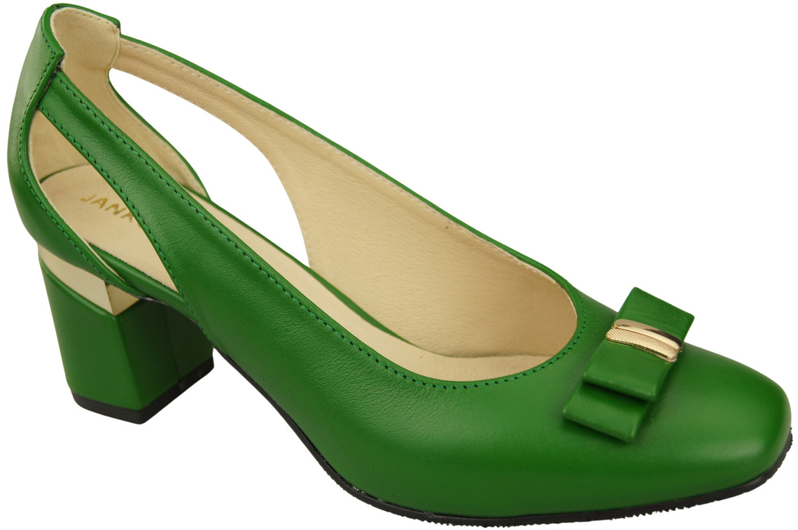 Dámská obuv Boty Zelená obuv z přírodní kůže s ozdobným podpatkem 199 ElitaBut