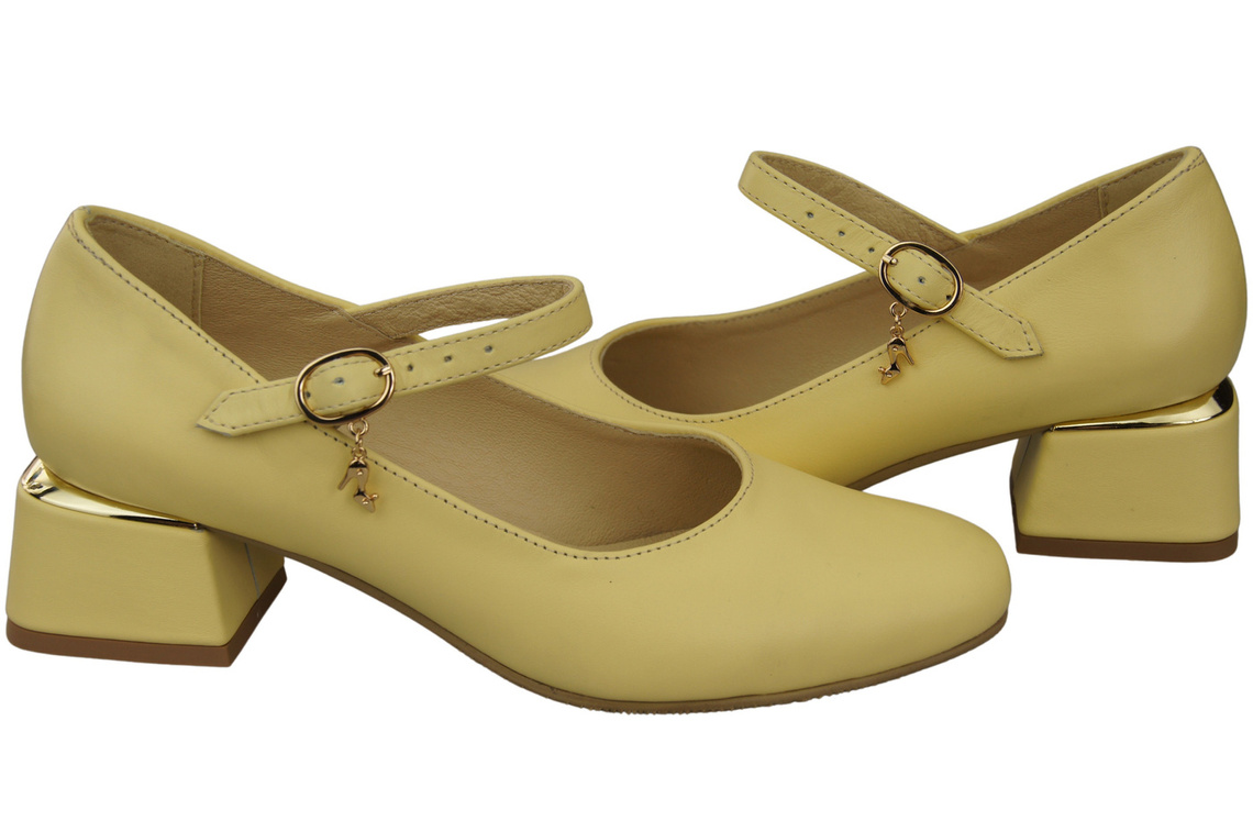 Obuwie Damskie Czółenka z Paskiem Bananowy Skóra naturalna 202 ElitaBut