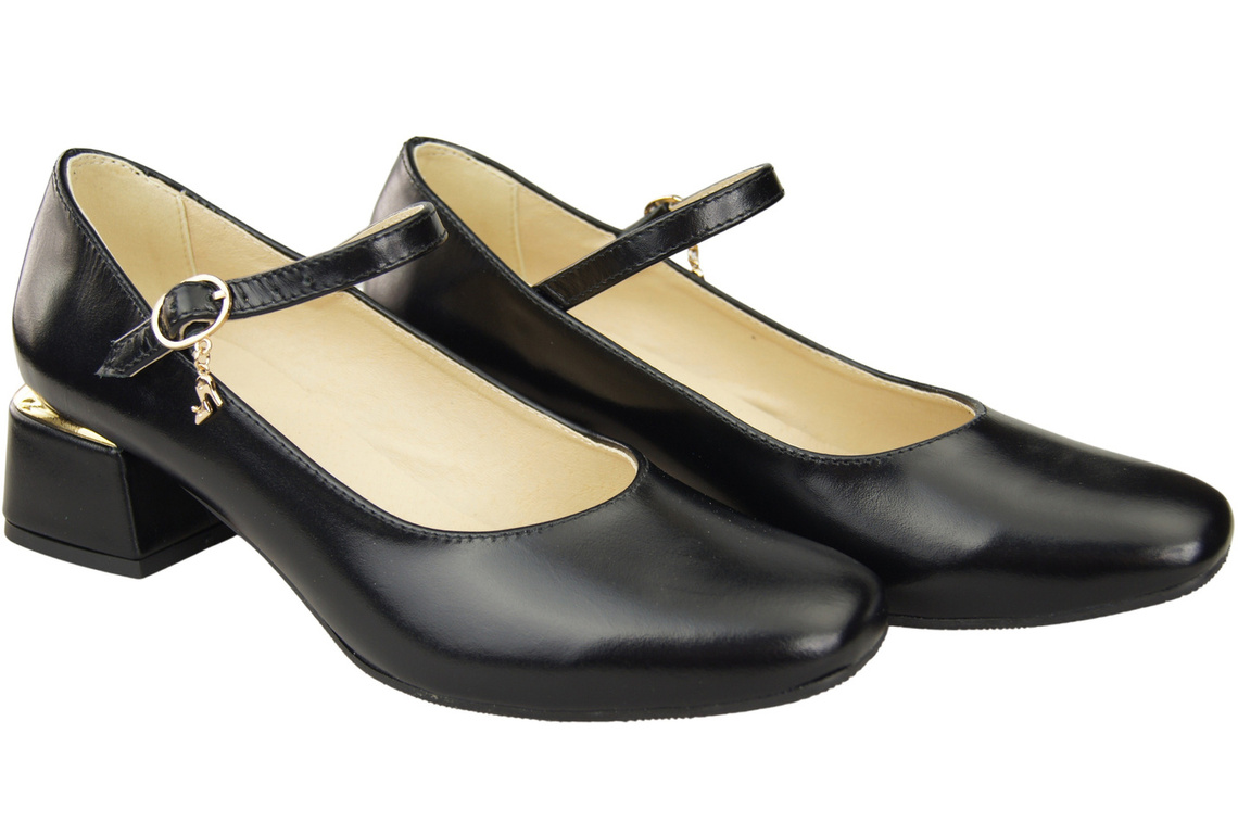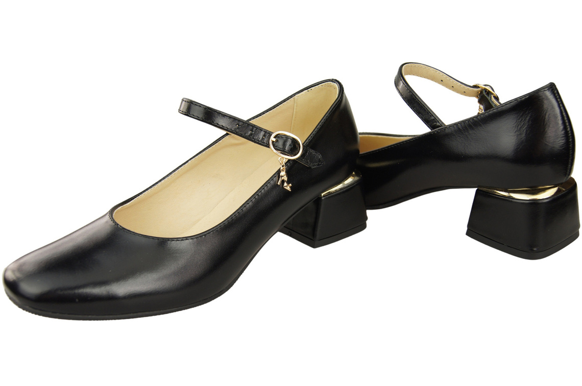 Dámská obuv Dámské lodičky s páskem Černá lesklá přírodní kůže 202 ElitaBut