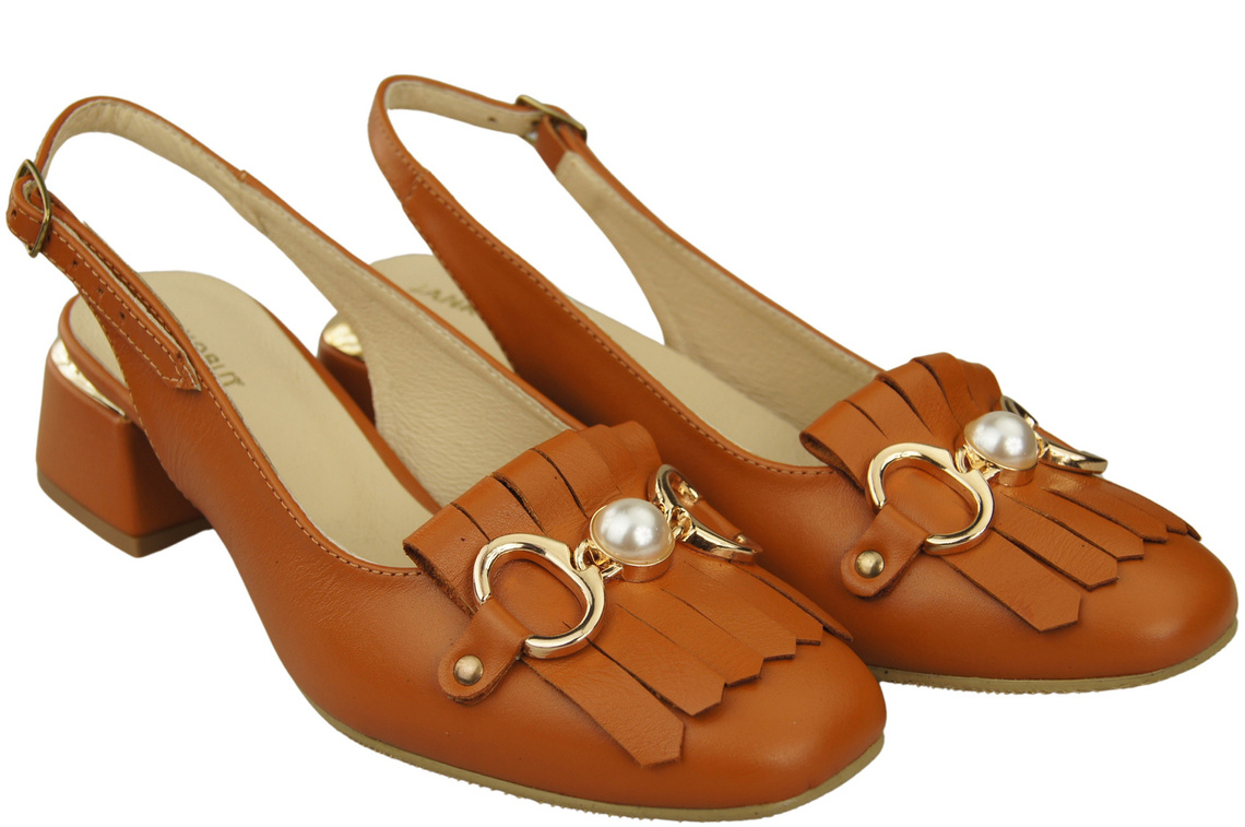 • Tyto sandály na nízkém podpatku kombinují klasiku s moderními prvky.
