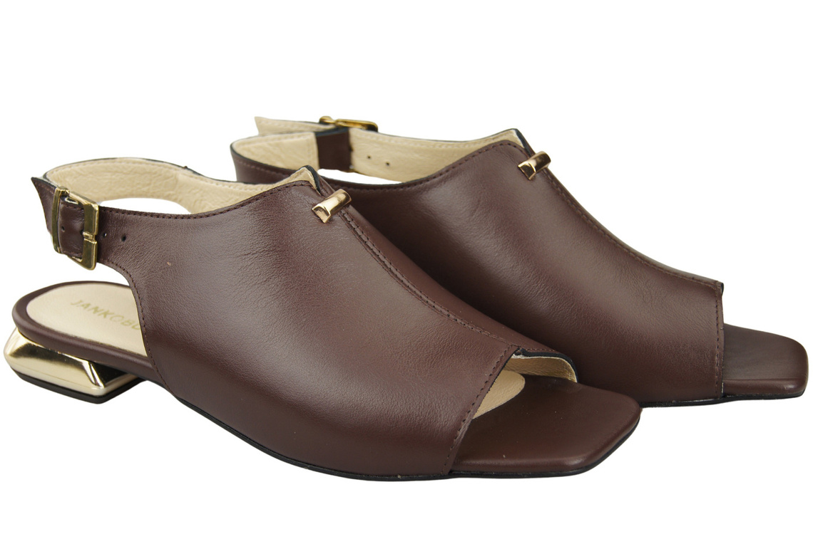 Pohodlná dámská obuv Čokoládové sandály Plochý zlatý podpatek Přírodní kůže 207 ElitaBut