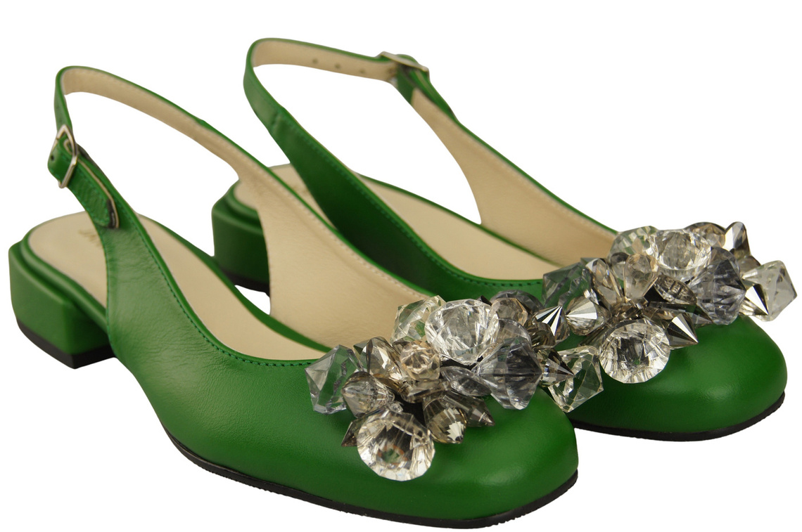 Dámská obuv Zelené sandály s krystaly Přírodní kůže 215 ElitaBut