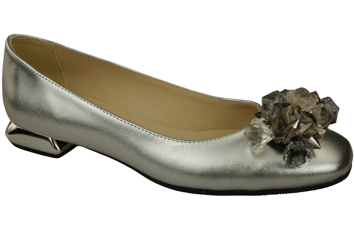 Dámské ploché stříbrné lodičky s krystaly z přírodní kůže 216 ElitaBut