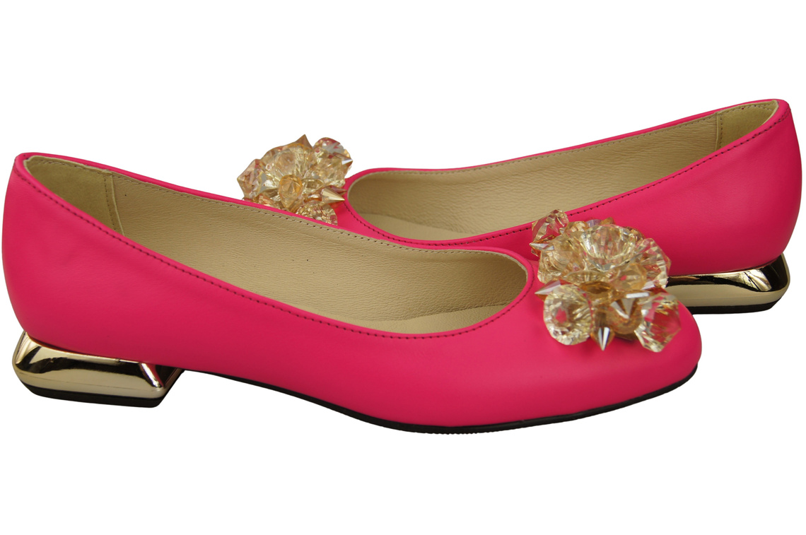 Dámské placaté neonově růžové boty s krystaly z přírodní kůže 216 ElitaBut