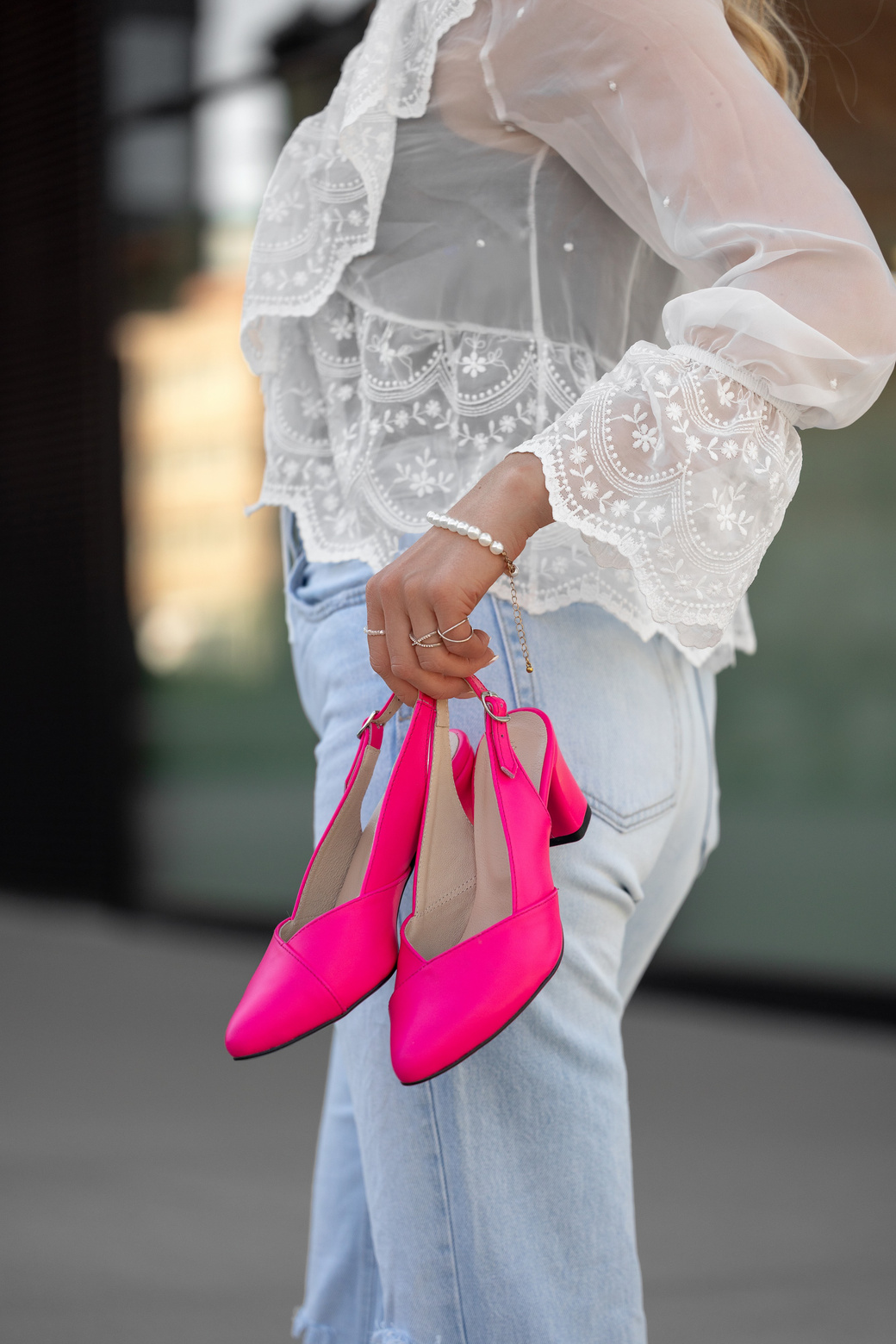 - Objevte jedinečný model slingbacks - boty, které kombinují klasickou eleganci s moderním designem. Otevřený podpatek a decentní zapínání kolem kotníku jim dodávají lehkost, zatímco špičatá špička je doplňuje o elegantní prvek.