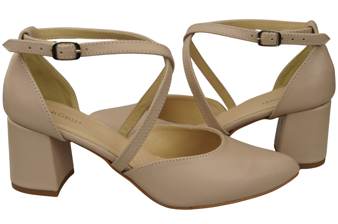 Elegantní Cappuccino Pale kožené sandály s otevřenými boky na robustním podpatku 218 ElitaBut
