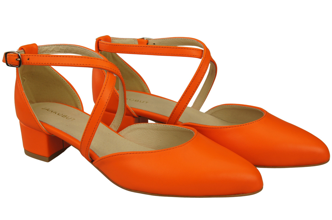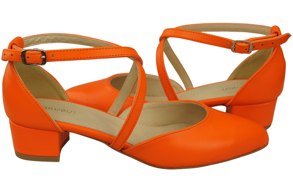 Dámské Sandály Kožené Orange s Pásky na Nízkém Podpatku 223 ElitaBut