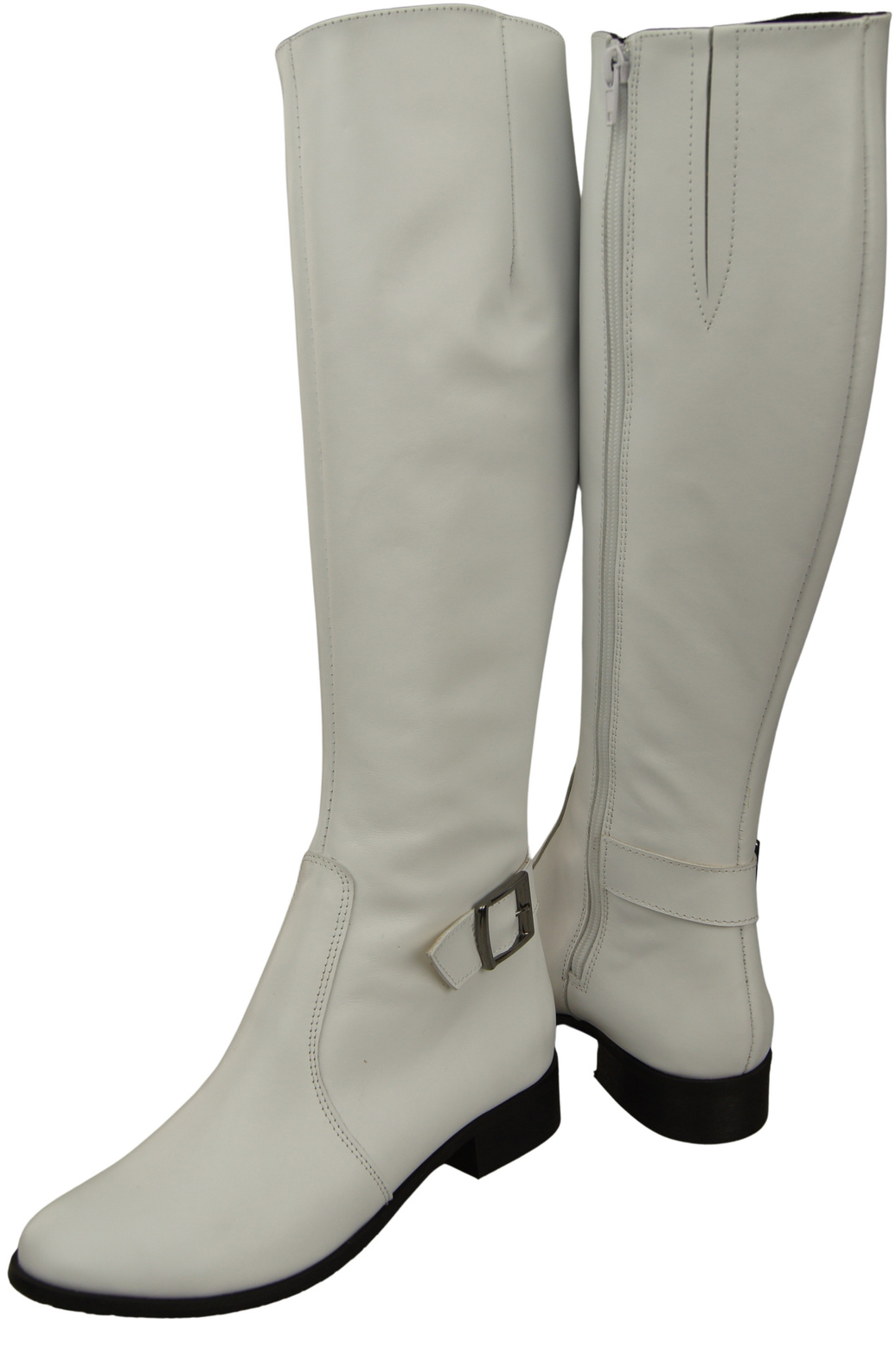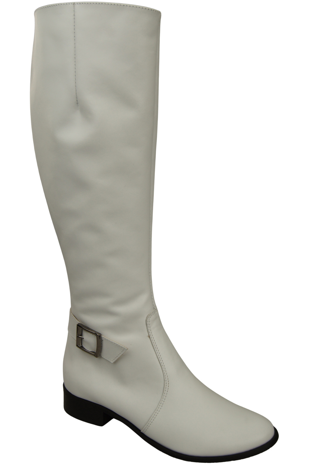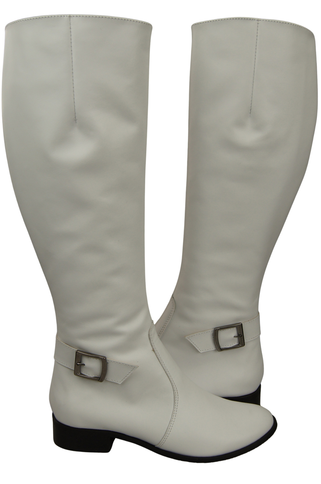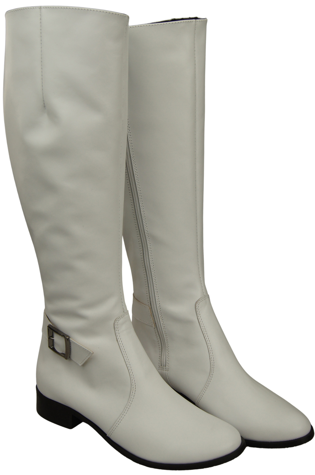 Dámské kožené kozačky Bílá zateplené oficerky, ploché 225 ElitaBut
