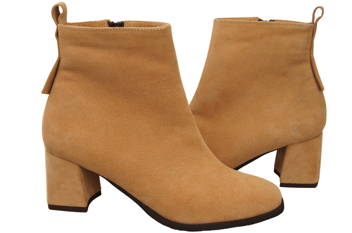 Dámské kotníkové boty Broskev z přírodní velurové kůže, stabilní blokový podpatek, se zipem 224 ElitaBut