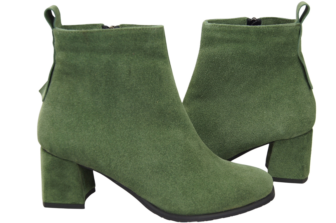 Dámské kotníkové boty Zelená láhev z přírodní velurové kůže, stabilní blokový podpatek, se zipem 224 ElitaBut