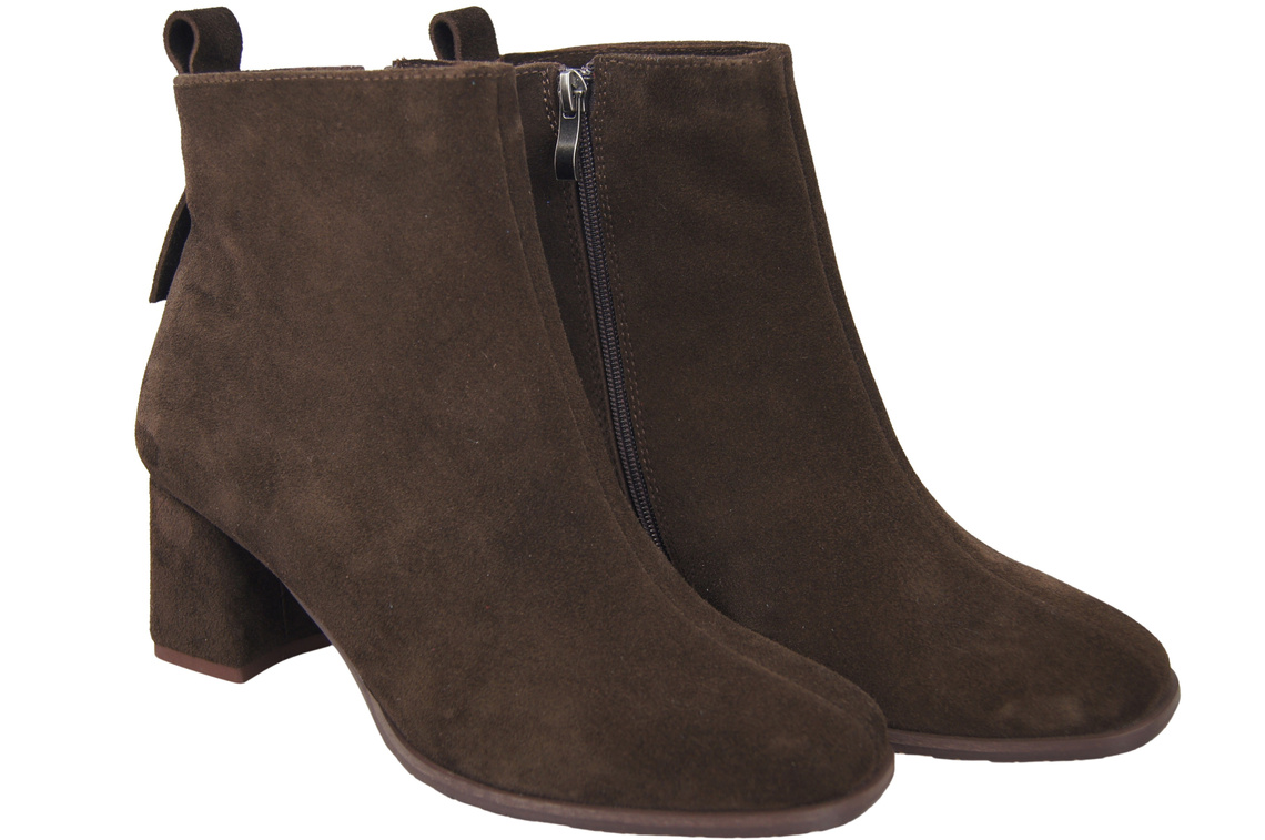 Dámské kotníkové boty Čokoláda z přírodní velurové kůže, stabilní blokový podpatek, se zipem 224 ElitaBut