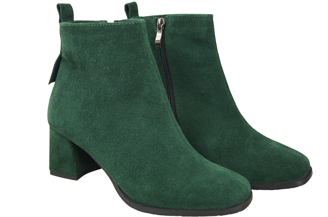 Dámské kotníkové boty Zelená z přírodní velurové kůže, stabilní blokový podpatek, se zipem 224 ElitaBut