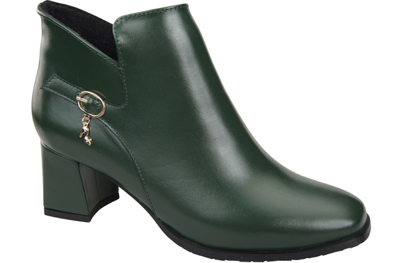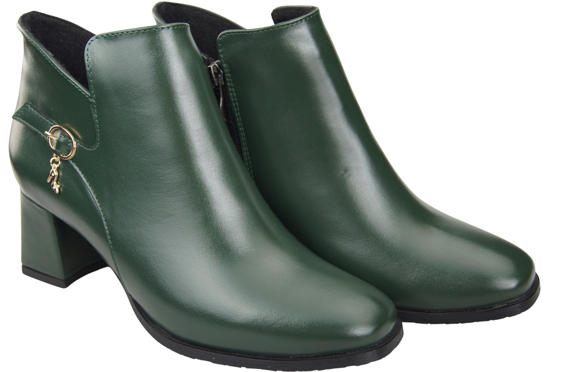Dámské kotníkové boty ElitaBut 226 Smaragdově zelená z pravé kůže, zateplené, hranatá špička, široký podpatek (blok)