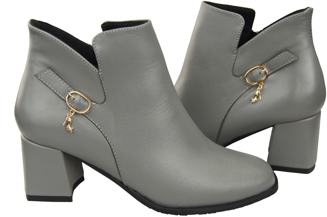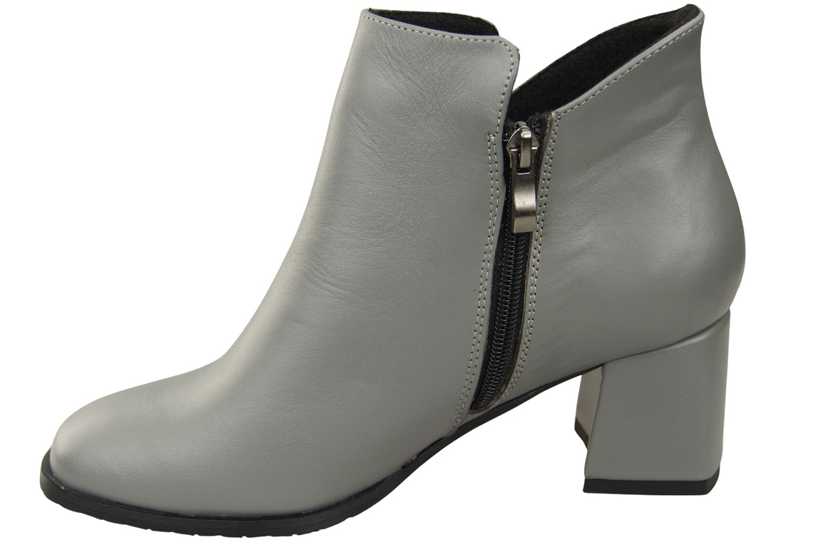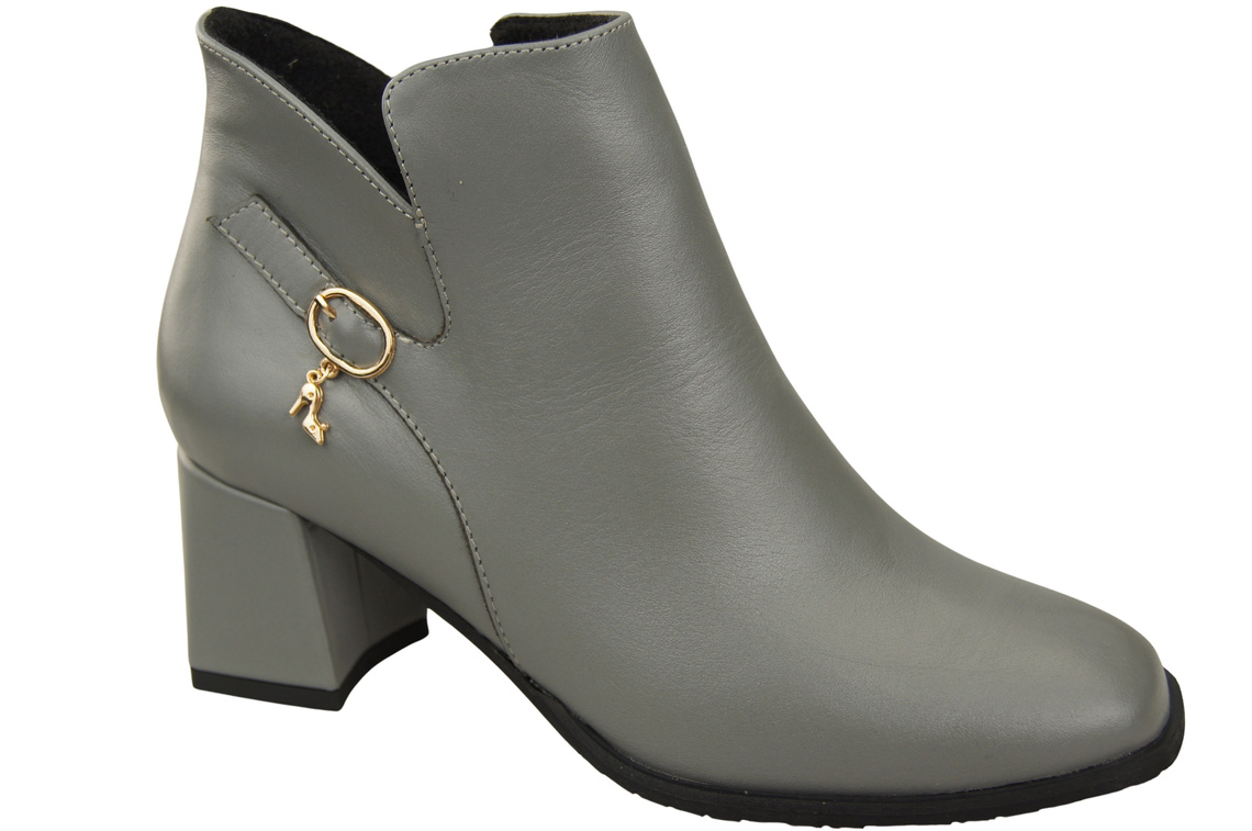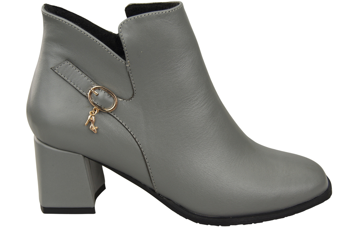 Dámské kotníkové boty ElitaBut 226 Ash z pravé kůže, zateplené, hranatá špička, široký podpatek (blok)