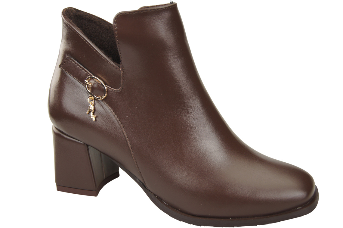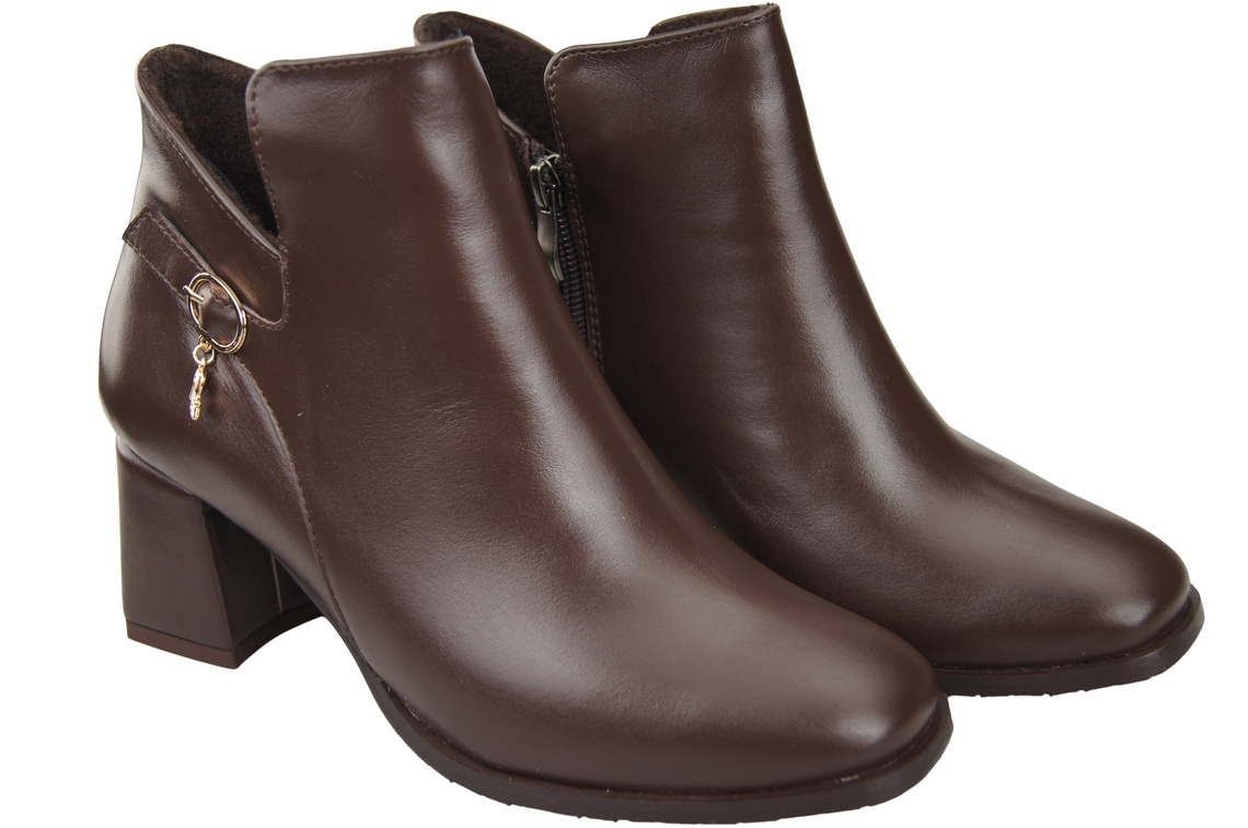 Dámské kotníkové boty ElitaBut 226 Čokoláda z pravé kůže, zateplené, hranatá špička, široký podpatek (blok)